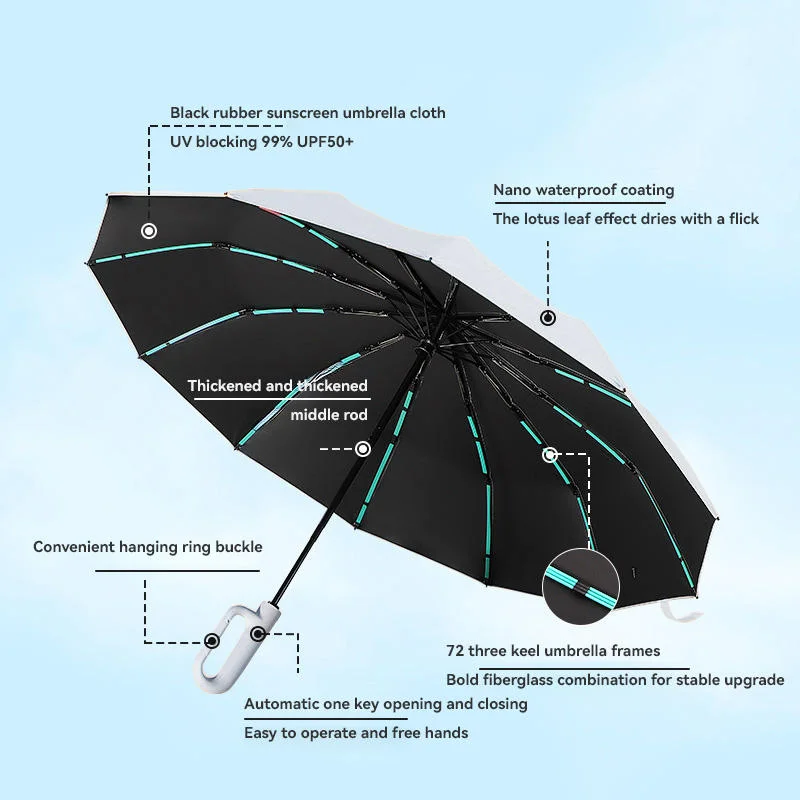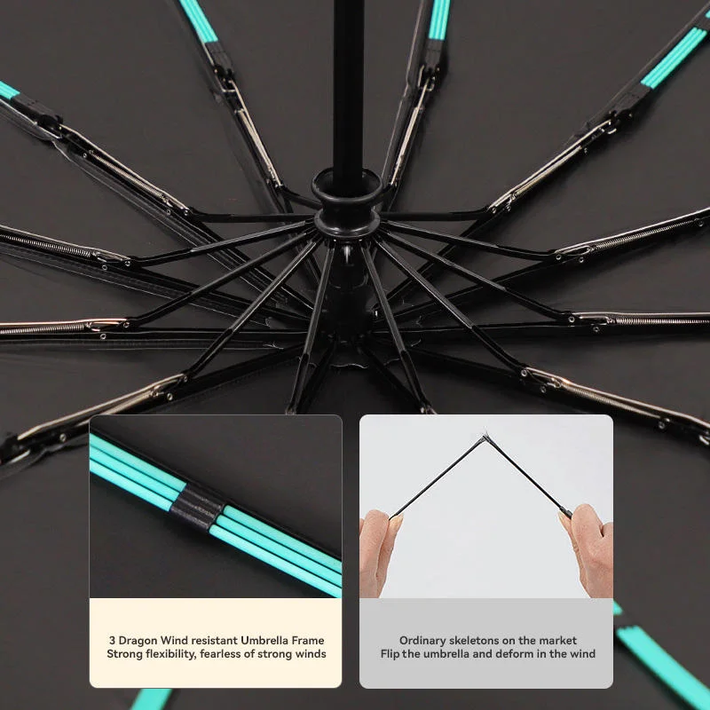 High Quality 3-Fold Automatic Umbrella Auto Open Nylon and Pongee UV Golf Umbrella