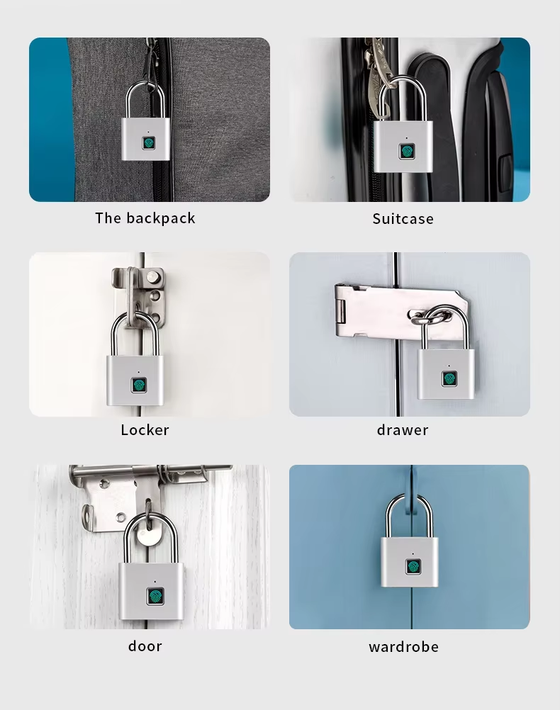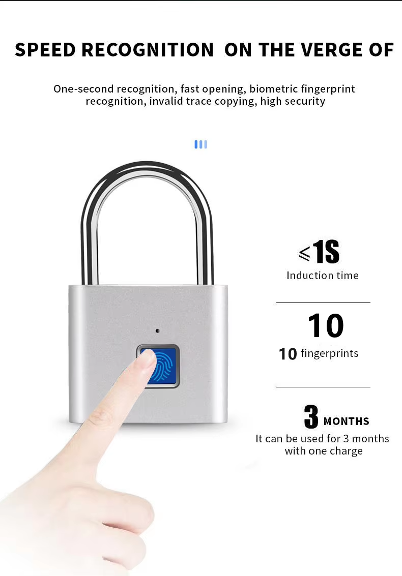 Smart Home Keyless USB Charging Fingerprint Lock Smart Padlock Waterproof Door Lock Unlock Portable Anti-theft Padlock Zinc