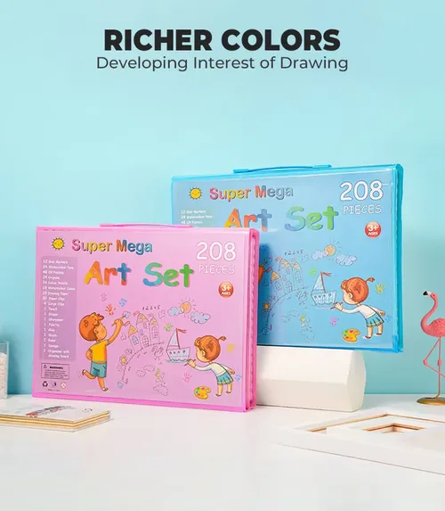 Super Mega 208 Piece Painting and Coloring Kids Art Set With Case & Easel - Drawing Set for Kids
