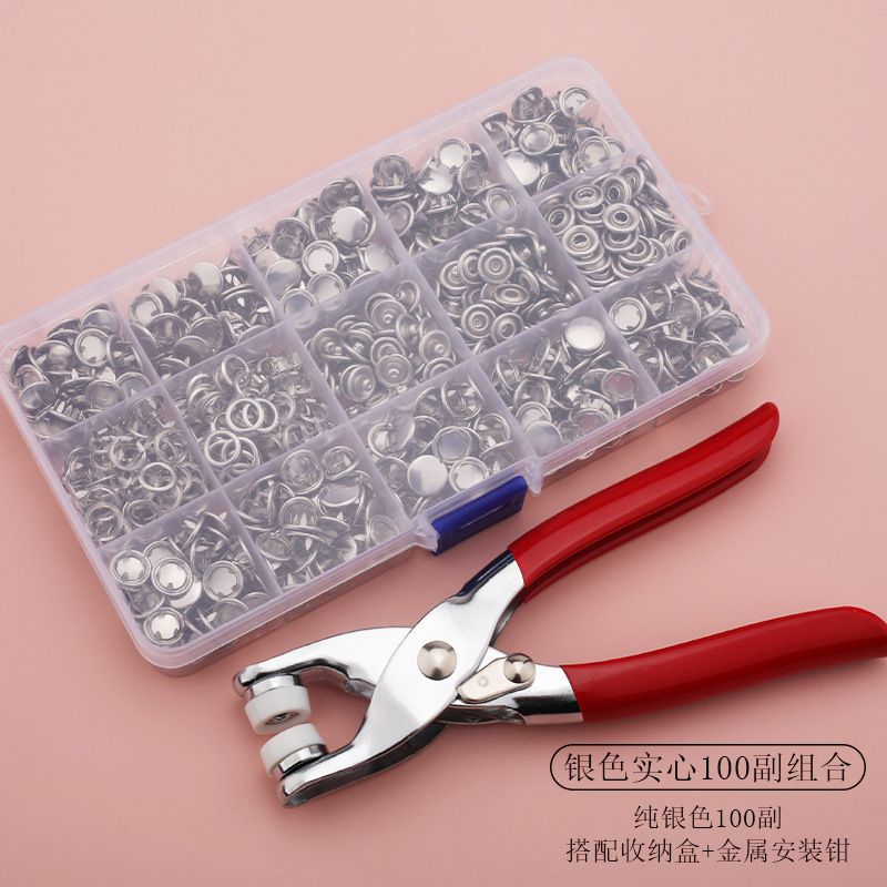 Including 100pcs Invisible Colored Metal Buckle & 1 Count Manual Pressure Pliers,Household Sewing Accessories for DIY Handicraft Clothing & Hat,Buttons & Pliers Tool Kit,Seamless Stitching Sewing Kit Tools,Sewing Supplies Crafts.