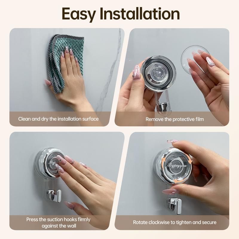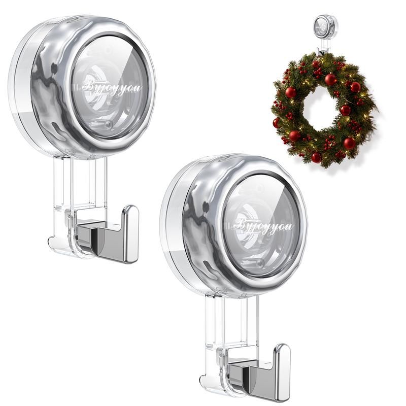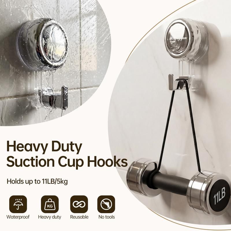 Pack of 2 Powerful Suction Cup Hooks Traceless Heavy Duty Robe Towel Hook Keys Clothes Bag Hanger Hook Bathroom Kitchen Organizer Accessor